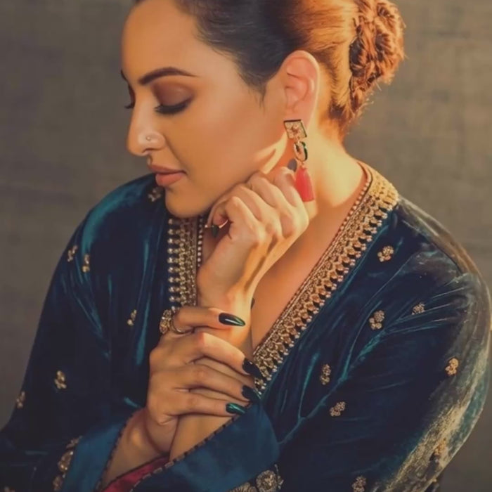 Make a grand style statement with our Luxury Blue Velvet Embroidered Anarkali Gown Set, crafted for women who love elegance with a royal touch. This premium Anarkali features rich velvet fabric highlighted with intricate golden embroidery, giving it a regal festive look.
